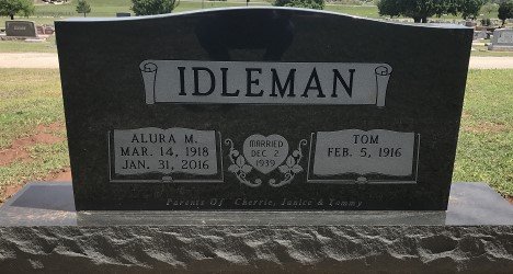 Alura leaves behind: Her husband of more than 76 years, Tom Idleman of Purcell; Her Daughters, Cherrie Karn of Oklahoma City and Jan Wilson of Lindsay; Her son, Tommy Idleman and wife Susan of Ft. Worth, TX; Grandchildren, Kip Karn and wife Dr. Anne Karn of Wagoner, OK, Sean Karn and wife Heather of Yukon, OK, Gavin Wilson and wife DeeDee of Lindsay, OK, Todd Wilson and wife Lesley of Lindsay, OK, Chase Idleman of Austin, TX, Ian Idleman of Houston, TX, and Erin Idleman of Ft. Worth, TX; Great grandchildren, Kenzy, Kamryn, Kale, Taylor and husband Blaine, Bailey, Londyn, Cody, Jett; Great Great Grandchildren, Brewer and Brett and A host of other family and friends.