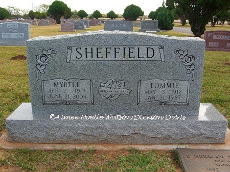Myrtle and Tommie Sheffield, Frederick Memorial Cemetery, Tillman County, OK