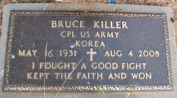 Bruce Killer the son of James and Sarah (Bunch) Killer was born May 16, 1931 in Stilwell, Oklahoma and departed this life on August 4, 2008 in Tulsa, Oklahoma, at the age of 77 years 2 months and 19 days.