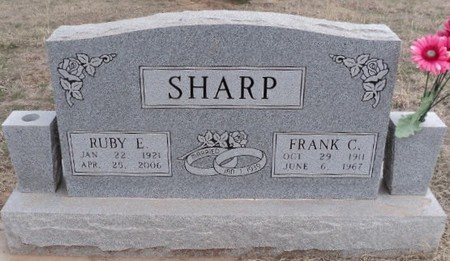 Ruby Ellen Sharp, daughter of the late Cary Harvey and Uclare (Cooper) Crusinbery, was born January 22, 1921, in Woods County, Oklahoma, and passed away April 25, 2006, at her home in Dacoma, Oklahoma, at the age of 85 years, 3 months, and 2 days.