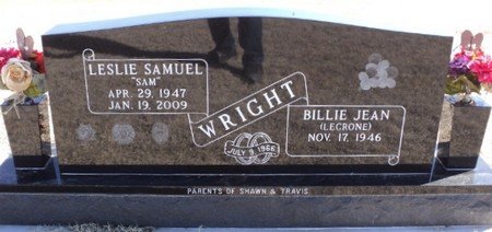 Billie is survived by two sons, Shawn Allen Wright and wife Jennifer, of Hydro; C. Travis Wright and wife Amy, of Allen, Texas; six grandchildren, Zac, Emily, Luke, Lance, Austin and Lane Wright; sister, Jamie Barr of Enid; three brothers, John LeCrone and wife Kathy, of Enid; Larry LeCrone and wife Deana, of Enid; and Joe LeCrone, of Bison; as well as numerous nieces, nephews, cousins, family and friends.