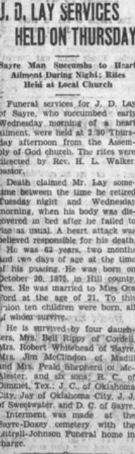 © 2000-2026 Oklahoma CemeteriesThe information on this site is provided free for the purpose of researching your genealogy. This material may be freely used by non-commercial entities, for your own research, as long as this message remains on all copied material. The information contained in this site may not be copied to any other site without written "snail-mail" permission. If you wish to have a copy of a donor's material, you must have their permission. All information found on these pages is under copyright of Oklahoma Cemeteries. This is to protect any and all information donated. The original submitter or source of the information will retain their copyright. Unless otherwise stated, any donated material is given to Oklahoma Cemeteries to make it available online. This material will always be available at no cost, it will always remain free to the researcher.