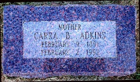 Date Unknown Carra Bell [Waddle] Adkins 1891 ~ 1992 On February 9, 1891, Carra Bell Waddle was born in Greer Indian Territory west of Altus, to Code L. Waddle and Laura D. Reynolds Waddle. Doc Reynolds who was the first Doctor and Druggist in Greer Indian Territory and Altus Community, delivered her. She was born in a dugout which was the standard home at the time. A week later they moved to Cordell and lived in a house for the first time on the exact location of where the courthouse square is now. Code farmed cotton on shares for the land owner. Next year they moved to Cloud Chief for several years and then 2 miles west of Alfalfa in 1901. In 1907 they moved 3 miles south of Carnegie, across the road from the present Royce & Tootsie Hawkins home. In 1912 she met George Adkins at a dance at the Reynolds home, which is the present Leatherbury home in the west part of town. It was love at first sight and they were married on July 14, 1912, at the old Dave Vincent house in North Lathram across the river, Dennis Little's placer now. A Brother Daniel of the Baptist Church married them. He was the same preacher who baptized Carra and Manie, a sister, in 1909 in a bend of the river west of town. The water was shoulder high and very cold, Carra said. George and Carra ran the Carnegie Hotel across the street west of the Baptist Church. Meals came with the rooms for 25 cents per meal extra. No charge for 2nds or 3rds at the family style table. George worked for Bogess and Elliot Blacksmith shop but bought Mr. Elliot out and Mr. Bogess in 1915. George went on and in the 20"s, had the first blacksmith chain in western Oklahoma. The large 50 ft. front shop was by the present Bolen Chevrolet Agency. They built the building in 1924. The other shops were at Lookeba, Dirty Shame, Mtn. View, Eakly and across the alley from the old City Jail, where the grain bin now stands. Blacksmiths who worked were Lawrence Jarnigan and Ralph Bucklew, who later had shops of their own. Carra has two sisters left; Della Waddle Underdown, Amarillo, Tex. and Lena Waddle Adair, Shawnee, Okla. Also Margelia Waddle, a sister-in-law at Okmulgee, Okla. The home she owns and lives in, when able, is at 18 West Ash. It is the oldest home in Carnegie, moved here from North Lathram. It is also one of the first to have the J.F. Boory electric service and sewer and water services. She has two boys; Junior and Carl Adkins, who will host a party for her at Junior's home, 329 E. 2nd, from 3 to 7 p.m. on Sunday, February 8. Friends and relatives are expected. On Monday, February 9, she joins the Golden 90 Club. On February 2 she subscribed for the Carnegie Herald but cannot remember how long she has subscribed to it, but says it seems like forever. Carra Bell [Waddle] Adkins February 9, 1891 ~ February 2, 1992 |