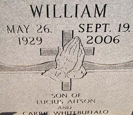 Thursday, September 21, 2006 William "Billy" Aitson 1929 ~ 2006 Carnegie - Funeral services for William "Billy" Aitson, 77, will be at 10 a.m. Friday at Cedar Creek United Methodist Church, Carnegie, with the Rev. Milton Otis and Lincoln Aitson officiating. Prayer service will be at 7 p.m. Thursday at Pitcher-Hackney Funeral Home Chapel, Carnegie. Mr. Aitson died Tuesday, Sept. 19, 2006, in Carnegie. Burial will be in Carnegie Cemetery. He was born May 26, 1929, in Carnegie, to Lucius and Carrie White Buffalo Aitson. He grew up in the Carnegie area and attended Carnegie High School. He married Joyce Guoladdle on Jan. 17, 1947 in Carnegie. He was a heavy equipment operator for Caddo County District 3 for more than 30 years before his retirement. He was on the softball team which won the first Oklahoma State All-Indian Men's Softball Trophy in 1952. He played for the Fort Cobb Rockets, managed by Leroy Nimsey. Survivors include his wife, of Carnegie; three daughters, Lydia Arocha and Sharon Aitson, both of Carnegie, and Jewell Tawkoyty, Oklahoma City; grandchildren, Hattie Shalaine Aitson, Lawton, Tosickah "TJ" Arocha, Carnegie, William Israel Tawkoyty, Oklahoma City, and Joey Arocha, Carnegie; a nephew, Myron Kaulaity, Ethete, Wyo.; special boys, Amos Aitson Jr. and Lincoln Aitson; and many cousins, relatives and friends. He was preceded in death by his parents; a son, Lucius "Yogi" Aitson; a daughter, Cheryl Lynn Aitson; and several brothers and sisters. William "Billy" Aitson May 26, 1929 ~ September 19, 2006 |