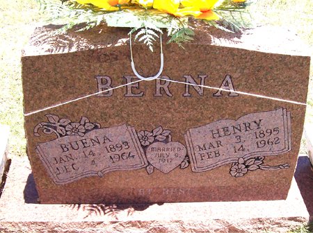 © Carnegie Herald Carnegie, Oklahoma Wednesday, February 21, 1962 Henry Wittie Berna 1895 ~ 1962 H.W. Berna Rites Held Saturday At Methodist Church H.W. Berna, long time resident of this area, died Wednesday, February 14, apparently from a heart attack at the home of his daughter, Mrs. Herman Deonier. Mrs. Deonier found her father's body when she returned from a quilting in the parental home Wednesday afternoon. He had suffered the fatal attack about two hours previous. He had had a heart condition for some time. Funeral services were held at 2 p.m. Saturday at the First Methodist church with Rev. A.F. Heusel, retired pastor, officiating. Interment was in the Carnegie cemetery. Henry Wittie Berna was born March 3, 1895, to William and Mary Berna, the fourth of sixteen children. When he was three months old his parents moved to Dublin, Texas, where he grew to manhood. Later moved to the Oney community where he was converted and joined the Highland Methodist church in 1918. On July 9, 1917, he was married to Miss Buena Gary of Anadarko. Five children were born to them. Mr. Berna and his family moved to the Alfalfa community in 1941 where he was custodian for the Alfalfa school for 13 years, resigning due to ill health. He had been a resident of Carnegie for six years. He is survived by the wife of the home in Carnegie; two sons, Alfred of Manteca, Calif., and Vollie of Hobart; three daughters, Mrs. Deonier, Carnegie, Mrs. Irene Simpson and Mrs. Juanita Morris, both of Oklahoma City; nine brothers, Omer of Aransas Pass, Texas, Coy and Linzey of Dublin, Texas, Elem of Hico, Texas, Verdett, La Feria, Texas, Rollie, Harlingen, Texas, P.O. Berna, Los Angeles, Calif., Elzie, Midwest City, and L.B. Berna, Anadarko; four sisters, Mrs. Vina Boyer, Geary, Okla., Mrs. Ina Pettyjohn, Dublin, Mrs. Audie Barrey, Fort Cobb and Mrs. Edna Scott, Huntington Beach, Calif., 11 grandchildren and one great-grandchild. Henry Wittie Berna March 3, 1895 ~ February 14, 1962 |