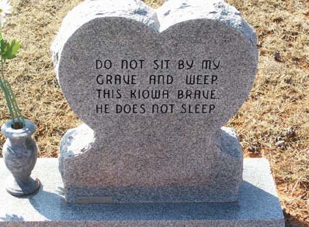 © Carnegie Herald Carnegie, Oklahoma June 19, 2002 Neva C. [Cody] Sawyer Graveside services for Neva C. Sawyer, 81, of Oklahoma City will be held Wednesday, June 19, 2002 at 11:00 a.m. at the Carnegie Cemetery with Rev. Billy Jones officiating. Prayer services were held Tuesday evening June 18 at 7:00 p.m. at the Pitcher-Hackney Funeral Home Chapel in Carnegie. Neva was born January 29, 1921 in Carnegie to Albert Cody and Lucy Saumty~Cody and died Monday, June 17, 2002 at her home in Oklahoma City. She grew up in Carnegie and graduated school at Riverside Indian School in Anadarko. She moved to Oklahoma city in the early 1940's. Neva was a member of the Kiowa War Mothers, Eastern Star, Kiowa Tribe and the Kiowa Election Board. She married George Sawyer on August 9, 1945 in Oklahoma City. She was a loving wife, mother, grandmother and friend. She will be missed very much. she is survived by her husband, George of the home; one son, George Sawyer III, of Livermore, California; five daughters, Merina Stoud of Wichita, Kansas, Judith Bridwell of Oklahoma city, Lucy Sawyer of Wichita, Kansas, Selena McMahon and Marie Sawyer, both of Oklahoma City; one brother, Calvin Saumty of Oklahoma City; numerous grandchildren and great grandchildren and a host of many loving friends. She was preceded in death by her parents; two sons, Richard Sawyer and Calvin East; two brothers, Clarence Pipestem and Robert Saumty; one sister, Alice Ruth Saumty. Services were under the direction of the Pitcher-Hackney Funeral Home in Carnegie. |