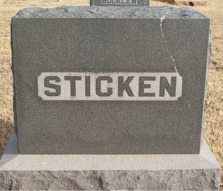 Henry John Sticken Henry John Stickens, made his home with his son, W.C. Stickens the last few years 5 miles NW of Carnegie. He was born in Alderndorf, Germany on February 8, 1934 and died June 14, 1917 aged 83 years, 4 months, 5 days. He came to the US in 1858 married Susan Neuenchwander in Indiana. Survived by his wife & 6 children. Mrs. Sticken makes her home with son John in Washington. Their children are W.C. Stickens of Carnegie; Fred Stickens of Ogleville, IN; Mrs. Frank Romie of Ogleville, IN; Mrs. S.M. Meeks of Thayer, MO; John Stickens of Chewelah, WA; & Mrs. R.A. McDermott of Chewelah, WA. |