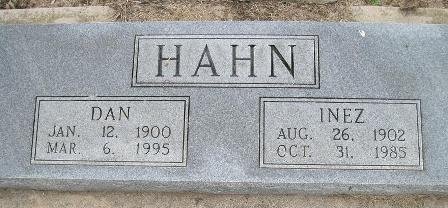 Daniel Ephriam "Dan" & Inez Iene (Thompson) Hahn