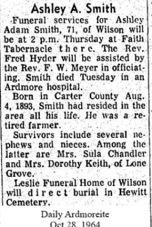 © 2000-2026 Oklahoma CemeteriesThe information on this site is provided free for the purpose of researching your genealogy. This material may be freely used by non-commercial entities, for your own research, as long as this message remains on all copied material. The information contained in this site may not be copied to any other site without written "snail-mail" permission. If you wish to have a copy of a donor's material, you must have their permission. All information found on these pages is under copyright of Oklahoma Cemeteries. This is to protect any and all information donated. The original submitter or source of the information will retain their copyright. Unless otherwise stated, any donated material is given to Oklahoma Cemeteries to make it available online. This material will always be available at no cost, it will always remain free to the researcher.