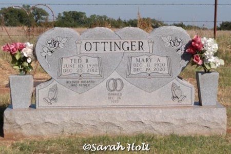 Ted R. and Mary A. Ottinger, Fletcher Cemetery, Fletcher, Comanche County, OK