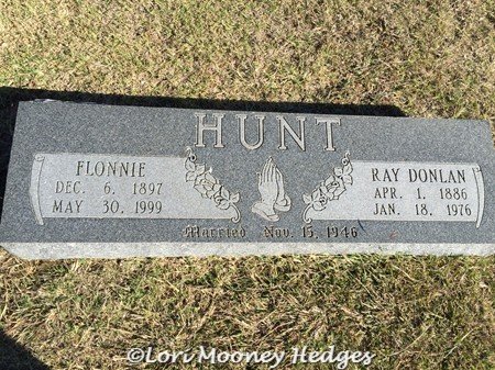 Flonnie and Ray Donlan Hunt, Temple Masonic Cemetery, Cotton County, OK