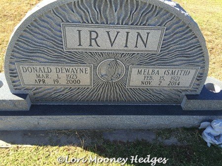 Donald Dewayne and Melba Smith Irvin, Temple Masonic Cemetery, Cotton County, OK