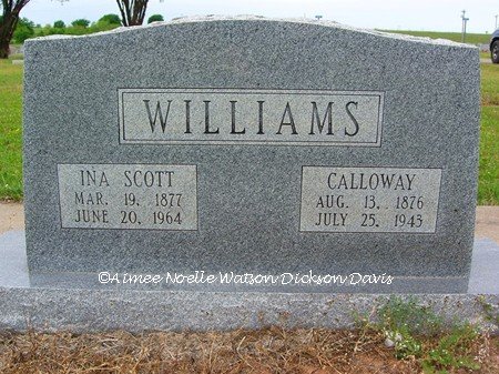 Ina Scott and Calloway Williams, Walters Cemetery, Walters, Cotton County, OK