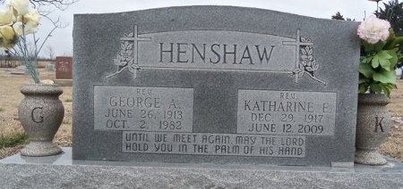 Katharine was preceded by her parents, her husband; George Allen Henshaw, her second husband; Earl Daniels; and her daughter; Edna Gale Mathis and Katherine Elaine Brewster.