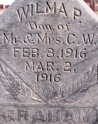 Wilma, the infant daughter of Mr. and Mrs. Chas. Graham, died at the home Thursday morning, age 24 days. The funeral services were held at Del Norte Church Friday morning. Rev. A.G. Williamson conducted the services. The remains were laid to rest in the Del Norte Cemetery. The family have the sympathy of the community in their sorrow.