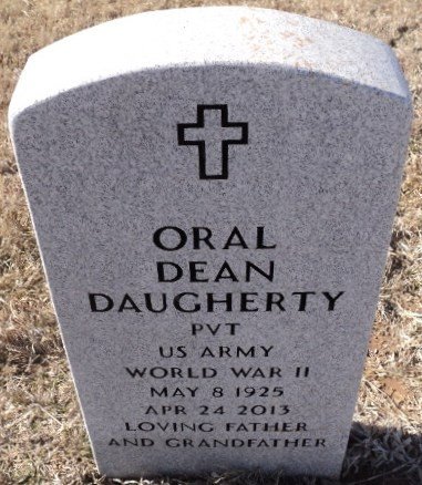 Funeral Services for Oral Dean Daugherty, 87, of Garber, Oklahoma will be 10:00 a.m., Monday, April 29, 2013 at the Garber 1st Baptist Church, Reverend Tom LeGrand will officiate. Visitation will be Saturday, April 27 from 6 to 8 pm at the Church.