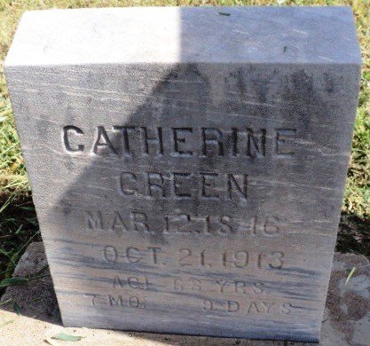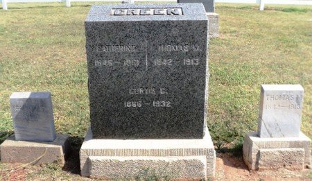 Thomas M. Green was born at Carlisle, Cumberland Co., Penn., Oct. 6, 1842 and died Feb. 13, 1913, at his home near Garber, Okla., aged 70 years, 4 months and 6 days. On the 7th of July, 1862, he was married to Catherine M. Steward at Lancaster, Penn. To this union were born five children, Calvin and Curtis C. Green, and Mrs. O.F. Morgan of Garber, Edith, who died in infancy and Mrs. M.J. Roberts of Lincoln, Nebr.