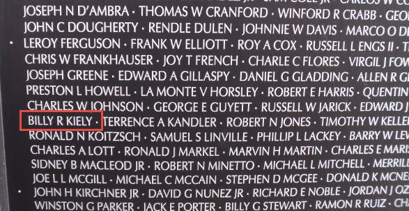 © Enid News and Eagle Enid, Oklahoma 1968 June 22, 1941 ~ May 9, 1968 Services for Sp4 Billy Kiely, 26, 1601 W. Thompson, will be at 2 PM Tuesday in Henninger-Allen Funeral Home Chapel with an Army chaplain officiating. Burial will be in Memorial Park Cemetery, with full military rites. Sp4 Kiely died May 9 as a result of fragmentation wounds he received while on duty near CuChi, Vietnam. He had been assigned with the 65th Engineer Battalion of the 25 th Infantry Division. Born in Enid he was a 1960 graduate of Enid high school and was employed at Marquise Studios before entering the military. He was a graduate of the Palmer Institute of Authorship, Hollywood, and the Minneapolis Art Institute. Entering the Army in April 1967, he took basic training at Fort Bliss and attended Quartermaster School at Fort Lee, Virginia. He was shipped to Vietnam September 11, 1967. Survivors include his parents, Mr and Mrs Mack Kiely and a sister, Mrs Levernon [Anita] Young of Enid; and a brother McGarie Kiely Jr, Alamogordo, New Mexico. |