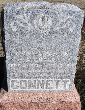 Mary E. Cordell was born near Lafayette, Ind., September 4, 1860, died at her home near Drummond, February 13, 1917, age 56 years, 5 months, 9 days. She was united in marriage to R.A. Connett June 29, 1881. Four children were born to this union, Willie died at the age of one year, one month, fourteen days. The husband, three children, survive. They are Claude of Humboldt, Kan.; Tony of Drummond; and Mrs. Geo. Ulrich of Miami, Okla.; four grandchildren also her aged mother and one brother of Decatur, Ill. She united with the Christian Church at the age of 27 and lived a devoted Christian life till she was called home. She was a kind and loving wife and mother and will be greatly missed.