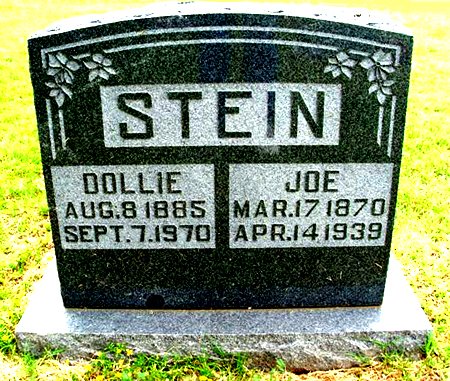 © Alex Tribune Alex, Oklahoma Thursday, April 20,1939 Alfred Joseph "Joe" Stein March 17, 1870 ~ April 14, 1939 Another Pioneer Passes To The Country Beyond Death called Friday morning at the home of A. J. Stein, pioneer merchant of Alex and ushered "Uncle Joe", as he was affectionately known to all, to the Land Beyond. Mr. Stein had been in failing health for several months, but had been able to attend to his grocery business here until a few days more than a week preceding the end. He first suffered a light paralytic stroke, was apparently regaining his strength and a second attack became evident, from which he never regained complete consciousness. A. J. Stein was born in San Antonio, Texas, March 17, 1870, and came to this community in 1900, where he engaged in farming. He was married to Miss Dollie Walker on September 20, 1906, by Rev. A. G. White, Methodist minister here at the time. The same year Mr. Stein built a residence in the southeast part of town where the family has since lived. He served as postmaster here from 1914 until 1922, and was engaged in the drug and mercantile business. Until the time of his last illness, two weeks ago, he was actively engaged in the grocery business. He leaves to mourn his loss the widow, three daughters, Mrs. C. J. McCune of Enid, Mrs. R. C. Hale of Alex and Miss Adele Stein of Chickasha, one son, Eugene, at home, two grandchildren here and two sisters in San Antonio. Funeral services were held Saturday afternoon at the West Side Church of Christ, Rev. W. G. Newberry conducting the rites. Burial was in the Morris cemetery, southeast of town. Honorary pallbearers were Pat O'Shea, Mike Philbin, Dr. W. R. Barry, Oscar T. Lents, John Shelby and M. H. Smith, and the active pallbearers were Claude Conner, D. B. Patterson, O. A. Bevill, O. H. Barham, H. T. Conover and John Frick. The Brown Funeral Home at Chickasha, was in charge of the funeral. |
