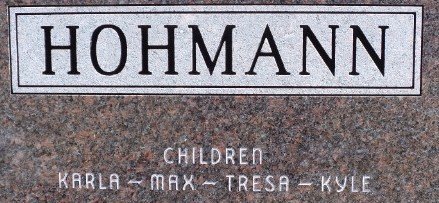 He is survived by his wife, Fern Hohmann of Deer Creek, Okla.; four children, Karla Leuenberg and husband Brian of De Soto, Kan., Max Hohmann and wife Becky of Deer Creek, Okla., Tresa Hohmann of Katy, Texas, and Kyle Hohmann and wife Nancy of Enid, Okla.; a sister, Florine LeClerc of Garden City, Kan.; and grandchildren, Jason Leuenberg, Garrett Hohmann and wife Stacie, Katie Kysar and husband, Preston, Greg Hohmann, Kellan Hohmann, Jared Hohmann and Adam Hohmann.