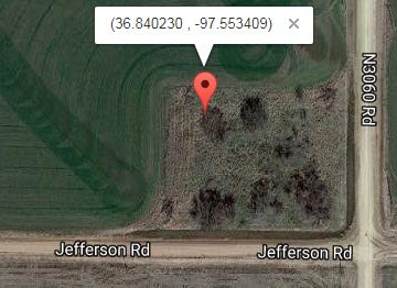 This cemetery is located 2 miles west of Deer Creek on State Highway 11, then 2 miles north on County Road 1060 to Jefferson Road; cemetery is located on the northwest corner of the intersection of County Road 1060 and Jefferson Road; the single stone in this cemetery is in the northwest corner of the property, under the largest tree in the area.