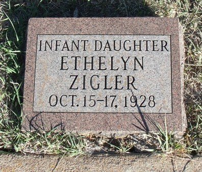 Ethelyn Zigler, infant daughter of James and Clara (Pearson) Zigler was born