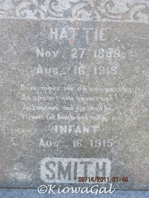 Hattie Smith and Infant Smith, Pleasant Ridge Cemetery, Kiowa County, OK