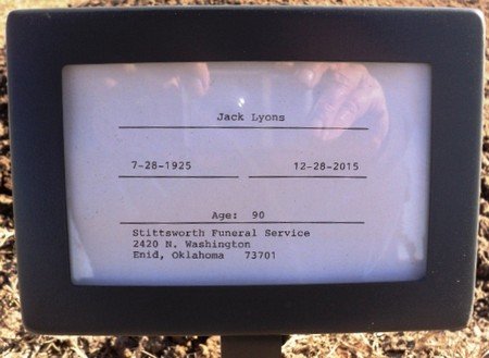 Jack was born on July 28, 1925 in Matfield Green, Kansas, the son of Howard and Alta Naylor Lyons and passed away peacefully on December 28, 2015 at Hillcrest Healthcare in Tulsa. He was raised and educated in Matfield Green, Kansas. Jack enlisted in the United States Army during World War II. Jack married Juanell McAbee in Coldwater, Kansas on April 14, 1977. He worked as a Tool Pusher in the oilfield for many years and moved to Enid via Alva in 1984.