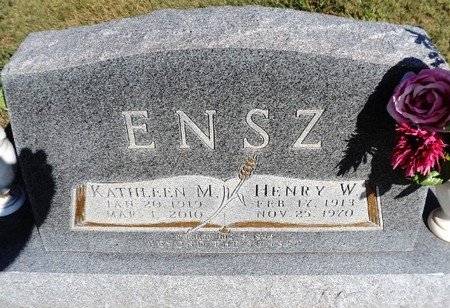 ENID - The funeral service for Kathleen M. Ensz , 91-year-old Enid resident, formerly of Ringwood, will be 10 a.m. Thursday, March 4, 2010, at Salem United Methodist Church, Drummond. The Rev. Shorty Unruh and Rev. Carl Sterling will officiate. Burial will follow in Pleasant Hill Cemetery under the direction of Henninger-Hinson Funeral Home.