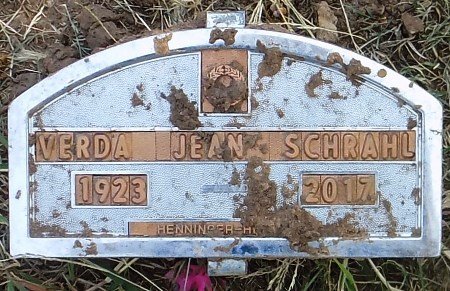 The funeral service for Verda Jean Schrahl will be 2:00pm Wednesday, July 19, 2017 in the Henninger-Hinson Funeral Home Chapel with Reverend Jody Schmidt officiating. A private family burial will precede the service in Pleasant Hill Cemetery. Arrangements are under the direction of Henninger-Hinson Funeral Home.