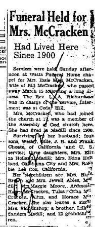 © 2000-2025 Oklahoma CemeteriesThe information on this site is provided free for the purpose of researching your genealogy. This material may be freely used by non-commercial entities, for your own research, as long as this message remains on all copied material. The information contained in this site may not be copied to any other site without written "snail-mail" permission. If you wish to have a copy of a donor's material, you must have their permission. All information found on these pages is under copyright of Oklahoma Cemeteries. This is to protect any and all information donated. The original submitter or source of the information will retain their copyright. Unless otherwise stated, any donated material is given to Oklahoma Cemeteries to make it available online. This material will always be available at no cost, it will always remain free to the researcher.