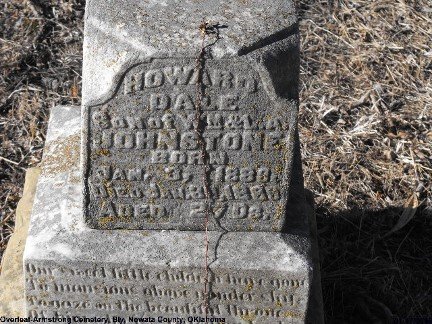 © 2000-2026 Oklahoma CemeteriesThe information on this site is provided free for the purpose of researching your genealogy. This material may be freely used by non-commercial entities, for your own research, as long as this message remains on all copied material. The information contained in this site may not be copied to any other site without written "snail-mail" permission. If you wish to have a copy of a donor's material, you must have their permission. All information found on these pages is under copyright of Oklahoma Cemeteries. This is to protect any and all information donated. The original submitter or source of the information will retain their copyright. Unless otherwise stated, any donated material is given to Oklahoma Cemeteries to make it available online. This material will always be available at no cost, it will always remain free to the researcher.
