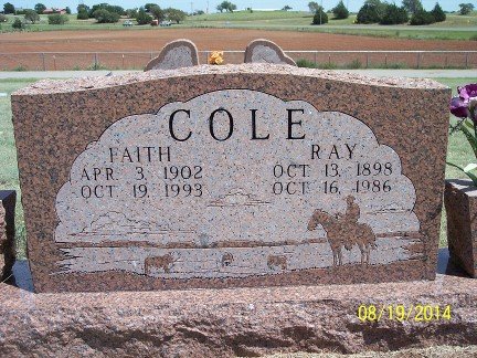 Ray Cole, 88, was born October 13, 1898 on the Washita River in Day County, Oklahoma Territory to James F. and Genia Humphrey Cole and passed away Thursday evening, October 16, 1986 at the Roger Mills Memorial Hospital in Cheyenne following an extended illness.