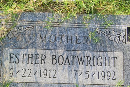 Esther Lenora Davis Boatwright was born September 22, 1912 in Pushmataha County, Oklahoma to Willie Louis and James Lafayette Simpson and passed away July 5, 1992 in the Roger Mills Memorial Hospital at the age of 79 years, 9 months and 13 days.