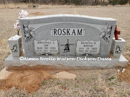 Johannes A. and Banetia H. Roskam, Parks Cemetery, Stephens County, OK