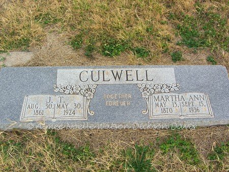 J.T. and Martha Ann Culwell, Devol Cemetery, Tillman County, OK