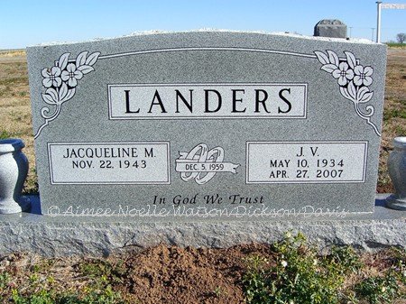 Jacqueline M. and J.V. Landers, Devol Cemetery, Tillman County, OK