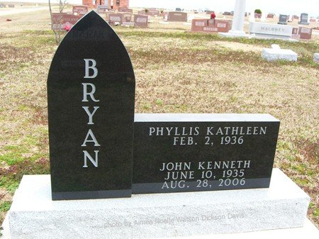 Phyllis Kathleen and John Kenneth Bryan, Grandfield Memorial Cemetery, Tillman County, OK