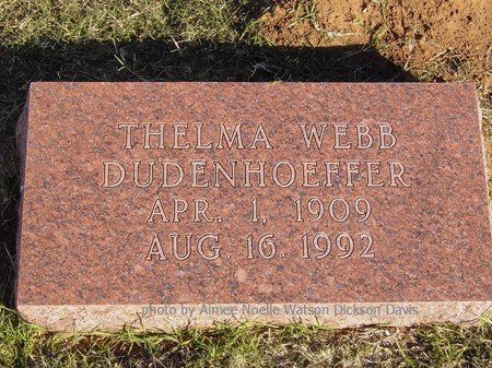 Thelma Webb Dudenhoeffer, Grandfield Memorial Cemetery, Tillman County, OK
