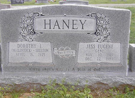 Dorothy I. McClintock Shelton and Jess Eugene Haney, Grandfield Memorial Cemetery, Tillman County, OK