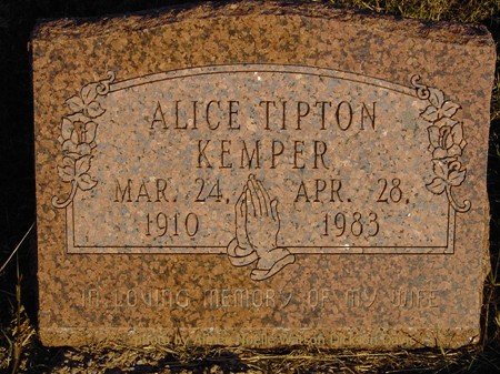 Alice Tipton Kemper, Grandfield Memorial Cemetery, Tillman County, OK