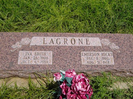 Iva Edith and Emerson Hicks LaGrone, Grandfield Memorial Cemetery, Tillman County, OK