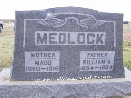 Maud and William A. Medlock, Grandfield Memorial Cemetery, Tillman County, OK
