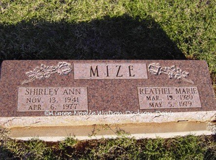 Shirley Ann Mize and Reathel Marie Mize, Grandfield Memorial Cemetery, Tillman County, OK