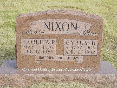 Floretta P. and Cyrus H. Nixon, Grandfield Memorial Cemetery, Tillman County, OK