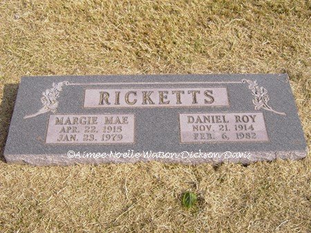 Margie Mae and Daniel Roy Ricketts, Grandfield Memorial Cemetery, Tillman County, OK