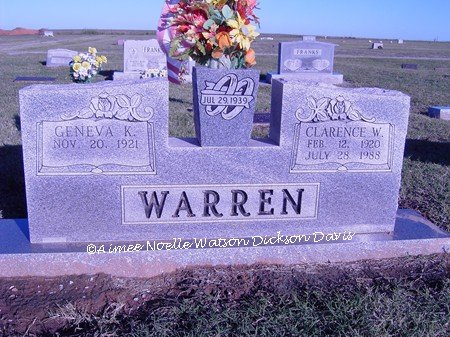Geneva K. and Clarence W. Warren, Grandfield Memorial Cemetery, Tillman County, OK
