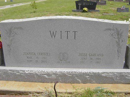 Juanita Fritze and Jesse Garland Witt, Grandfield Memorial Cemetery, Tillman County, OK