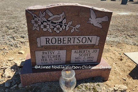 Patsy J. Butcher Robertson and Alberta Jo Robertson Scott, Schofield Cemetery, Tillman County, OK